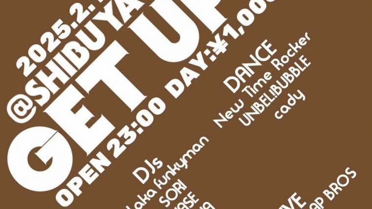 GET UP!! OPEN 23:00〜 ¥1000 HIP HOP / SOUL / FUNK / DISCO DJs JUN aka funkyman SORI YUI KASE AZTHA 凪 DANCE New