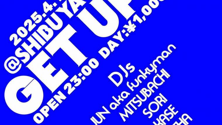 GET UP!! OPEN 22:00〜 ¥1000 HIP HOP / SOUL / FUNK / DISCO DJs JUN aka funkyman MITSUBACHI SORI KASE AZTHA 凪 YUI