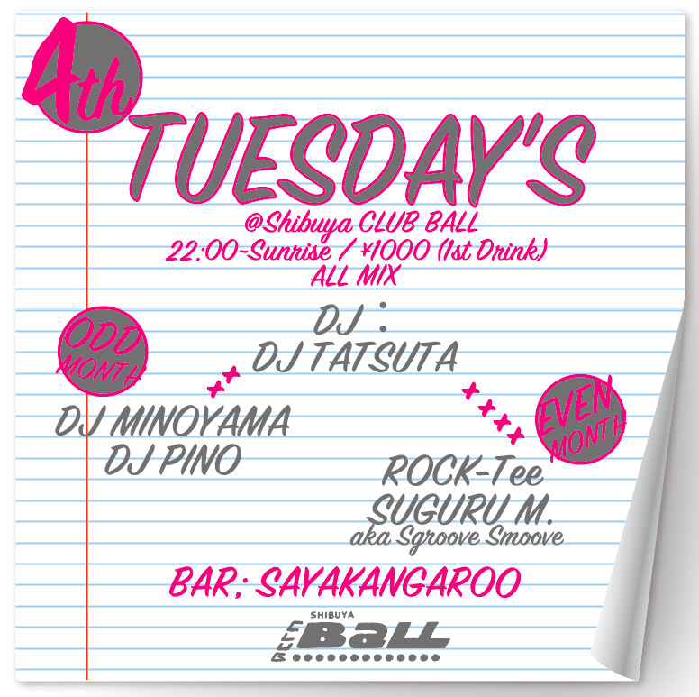 毎月第4火曜日、DJ TATSUTAを中心に、ワイワイざわざわした同世代な一夜。