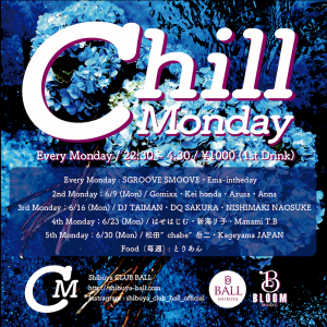 Chill Tuesday 心地よい選曲!会話が弾む適度な音量!!美味しいお酒!!! 新しい週の始まり、ひと時は喧騒を忘れ平日の夜更かしを渋谷クラブボールにてお楽しみください。 火曜日限定ウィスキーをご用意にて、皆様のご…